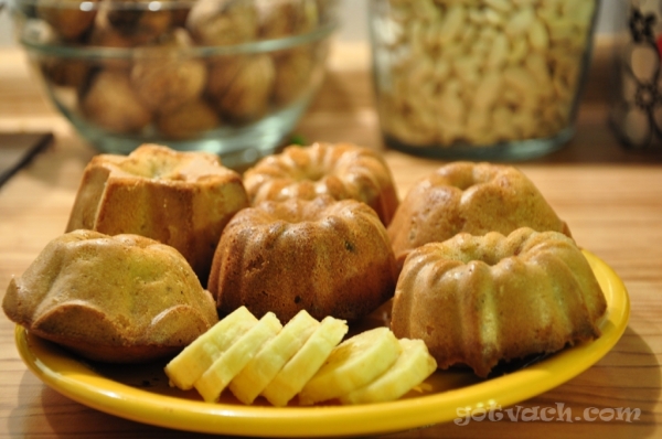 Бананите се намачкват в една купа. В друга купа се разбърква всичко останало, добавят се бананите и се пече в тавичка намазана с масло. Маслото може да бъде и 100 гр.