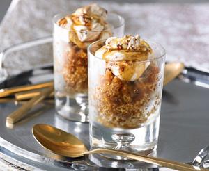 Готовата гранита се разпределя в чаши, украсява се със сметаната и се полива със сиропа от калуа.