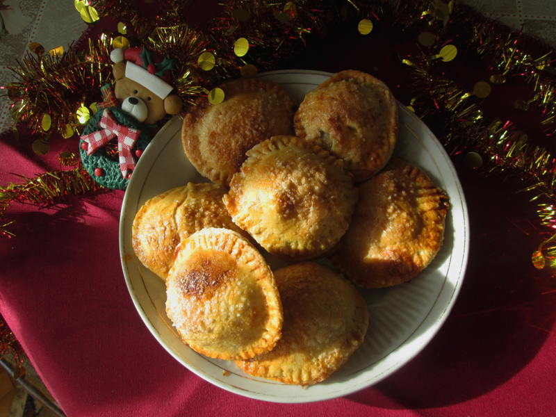 Дванадесет от кръговете се подреждат върху хартията за печене. Всеки от тях се намазва със сладко от дюли, парченца круша и бри. Оставя се малко място по края на кръга, за да има място покриващия кръг да се захване, и се намазва с яйчен жълтък. Покриващият кръг се поставя и краищата се притискат с вилица за да се залепят. След като всички пайове са похлупени се намазват с четка с разбитото яйце.