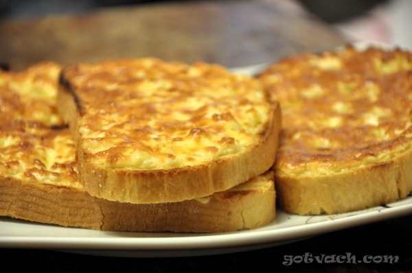Филийките се намазват с масло, отгоре се поставят кръгчета от яйцата и върху тях се настъргва сиренето. Приготвените сандвичи се украсяват с резенче от доматите, кръгчета от маслините и листенца магданоз.