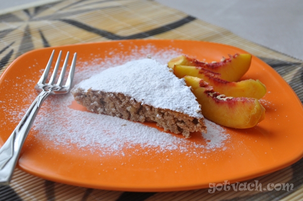Всички продукти се смесват и изсипват в намазнена тавичка и сладкишът се пече на умерена фурна. Когато е готов, се украсява по желание с плодове или поръсен с пудра захар.
