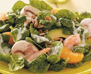 РЕЦЕПТИ >> САЛАТИ >> Спаначена салата със скариди