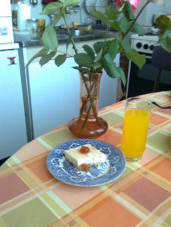 Оставя се за няколко часа в хладилника. Намазва се с конфитюр или сладко от череши.