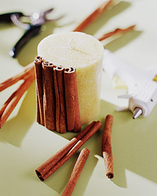 Друга лесна есенна украса е да вземете обикновена свещ и да налепите канелени пръчици около нея. Съвсем лесно е за изработване и ухае прекрасно. Ако направите колекция от 3 или 5, с различни размери ще създадете поразително ефектна композиция.