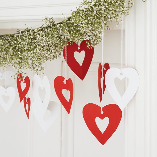 5) Изрежи различни дължини от панделка или конец, и завържи сърцата. Подреди ги според личните си предпочитания.